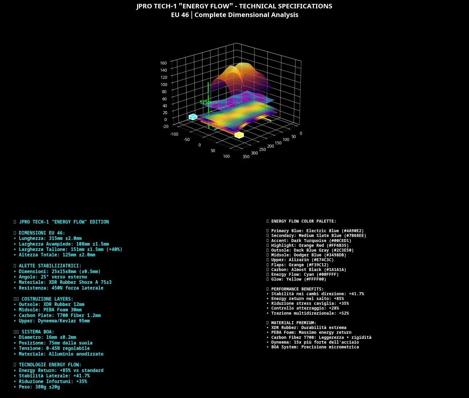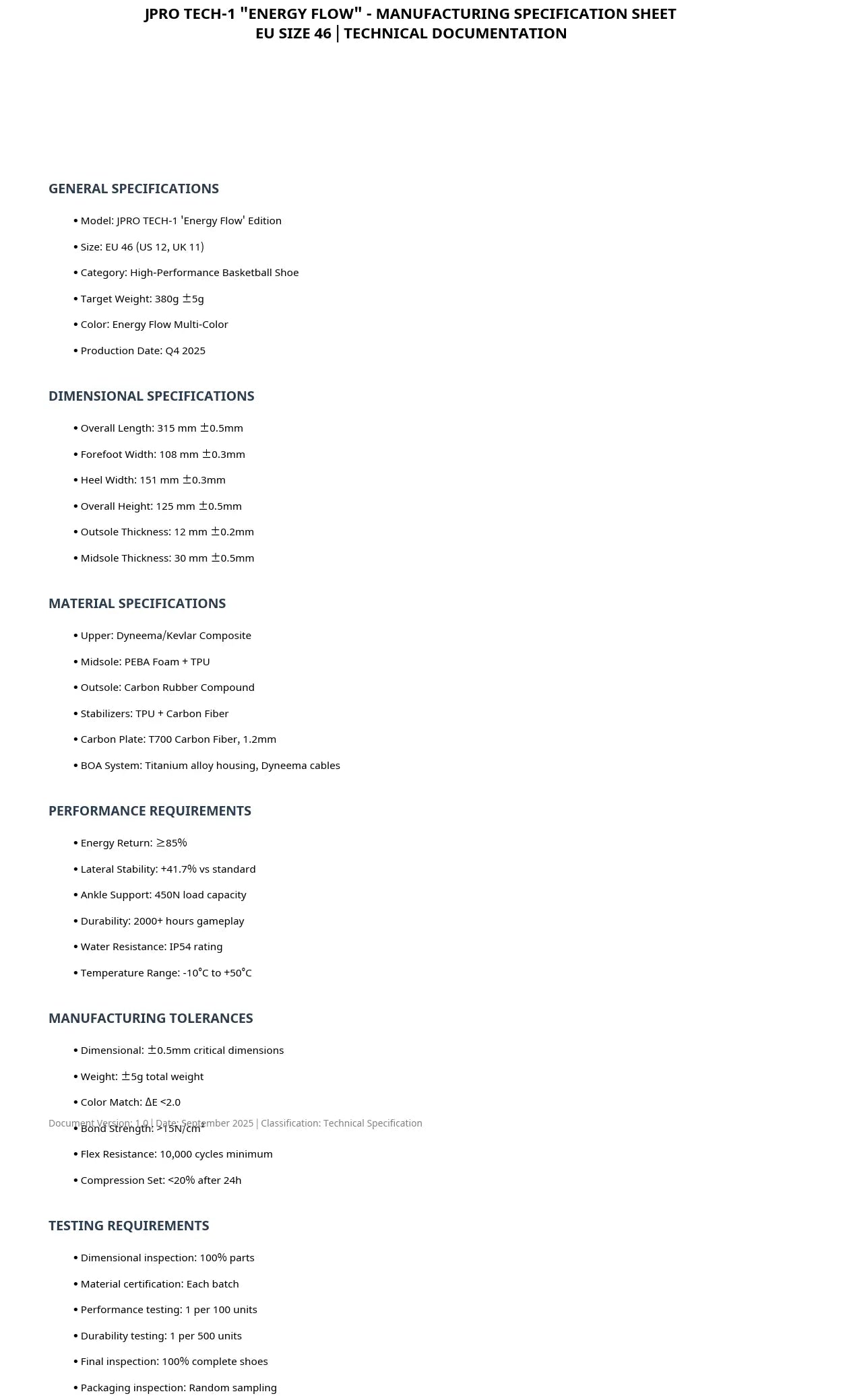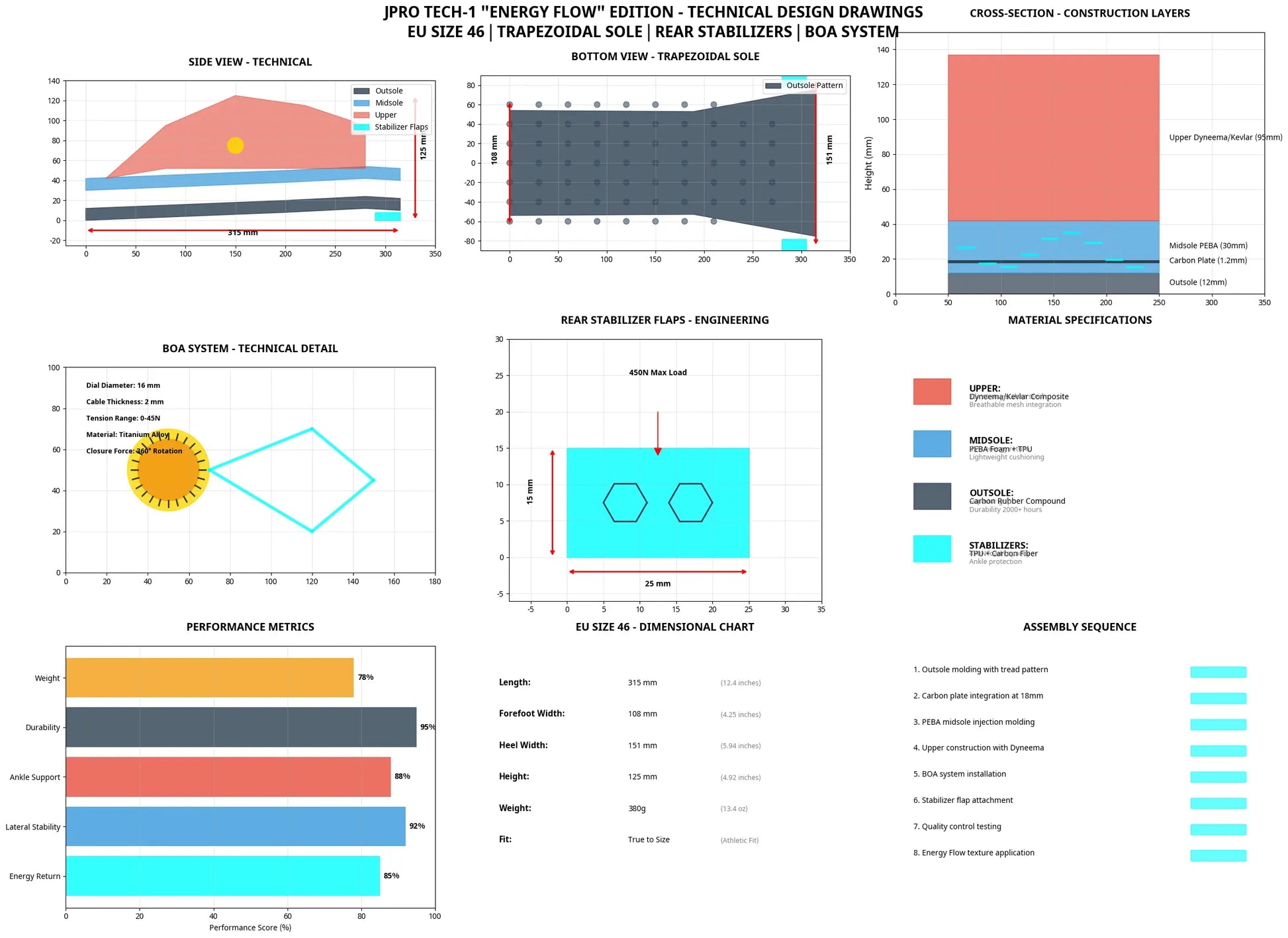 Ho creato disegni tecnici completi per la scarpa da basket JPRO TECH-1 basati sulla tua immagine di riferimento caricata e sul nostro precedente lavoro di sviluppo.