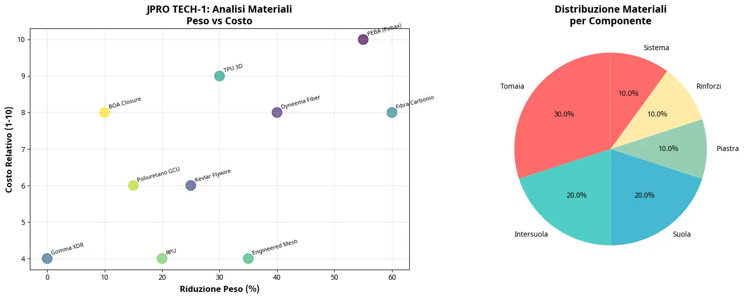 Materiali: tomaia in Dyneema/Kevlar, intersuola in PEBA